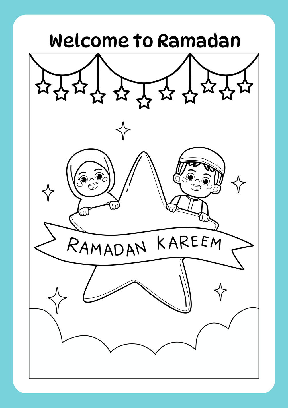 Ramadan Colouring Page Worksheet Bleu and White Educational Style